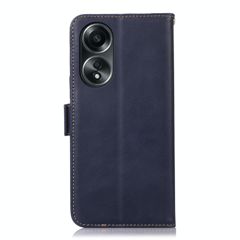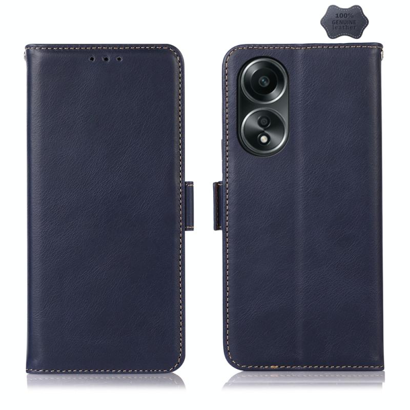 Θήκη τηλεφώνου από γνήσιο δέρμα αγελάδας Crazy Horse Top Layer για OPPO A58 4G (Μπλε)