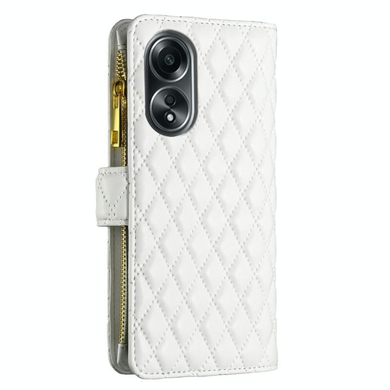 Για OPPO A58 4G Diamond Lattice φερμουάρ πορτοφόλι δέρμα Flip τηλέφωνο υπόθεση (Λευκό)