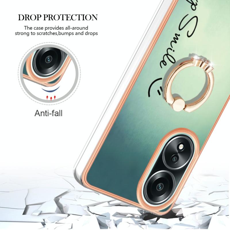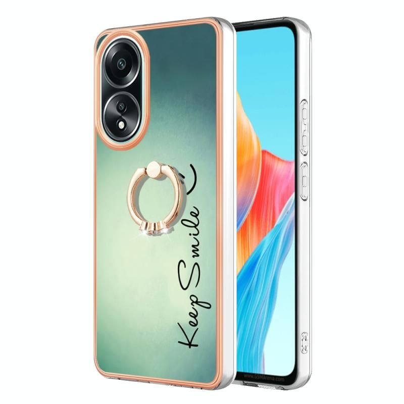 Θήκη τηλεφώνου με δακτύλιο και σχέδιο χαμόγελου για OPPO A58 4G, με ηλεκτρολυτική επίστρωση και IMD διπλής όψης.