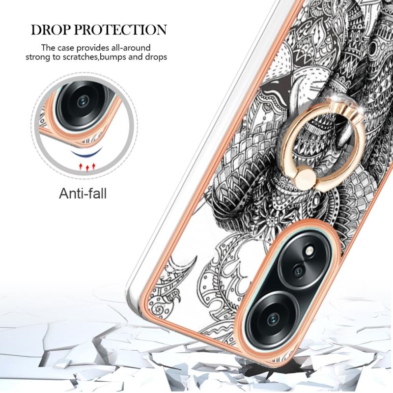 Θήκη τηλεφώνου με δακτύλιο στήριξης και σχέδιο Totem Elephant για OPPO A58 4G, με ηλεκτρολυτική επικάλυψη και IMD διπλής όψης.