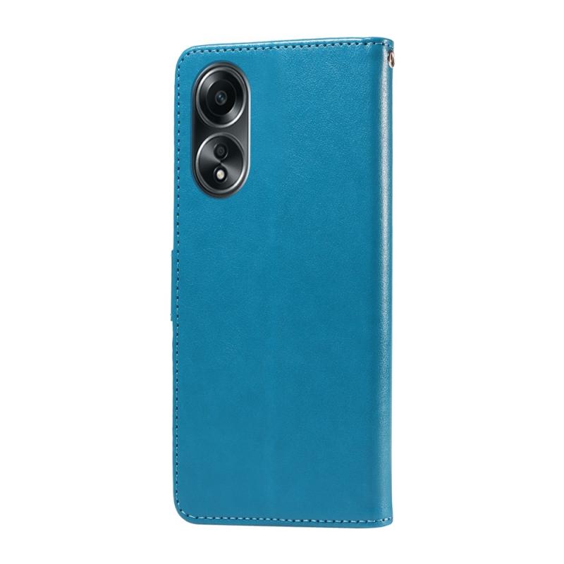 For OPPO A58 4G Embossed Butterfly Flowers Leather Phone Case(Blue)