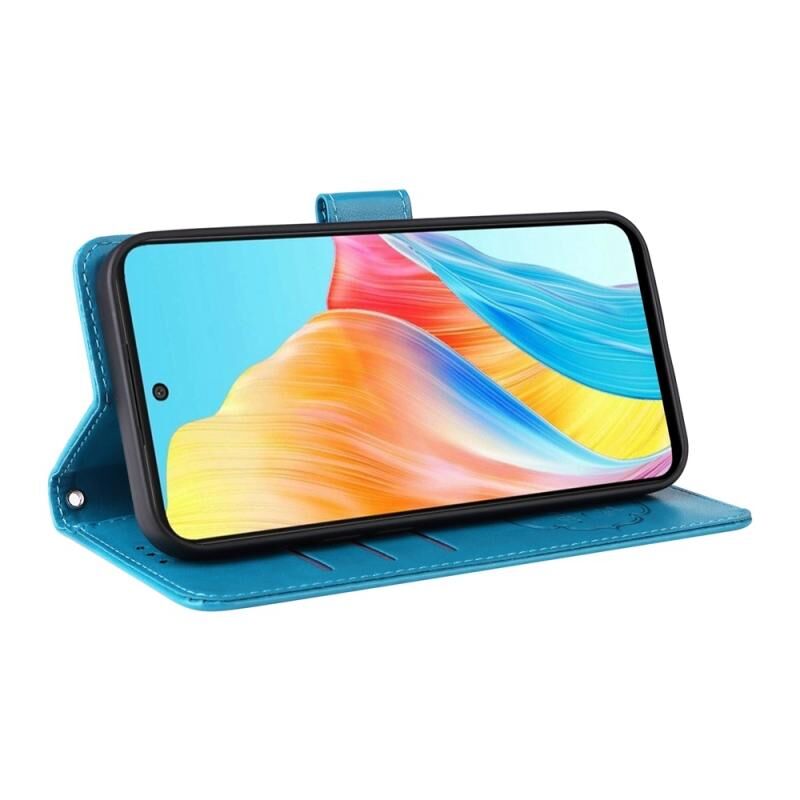 Θήκη τηλεφώνου από δέρμα με ανάγλυφα λουλούδια και πεταλούδες για OPPO A58 4G (Μωβ)