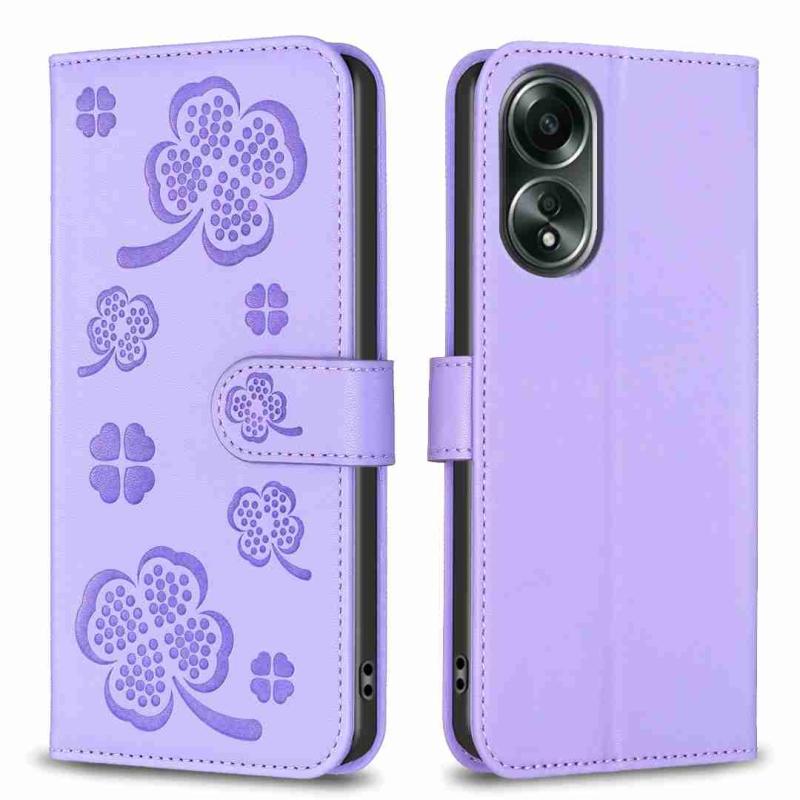 For OPPO A58 4G Four-leaf Embossed Leather Phone Case(Purple)