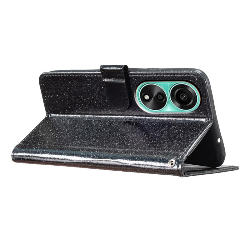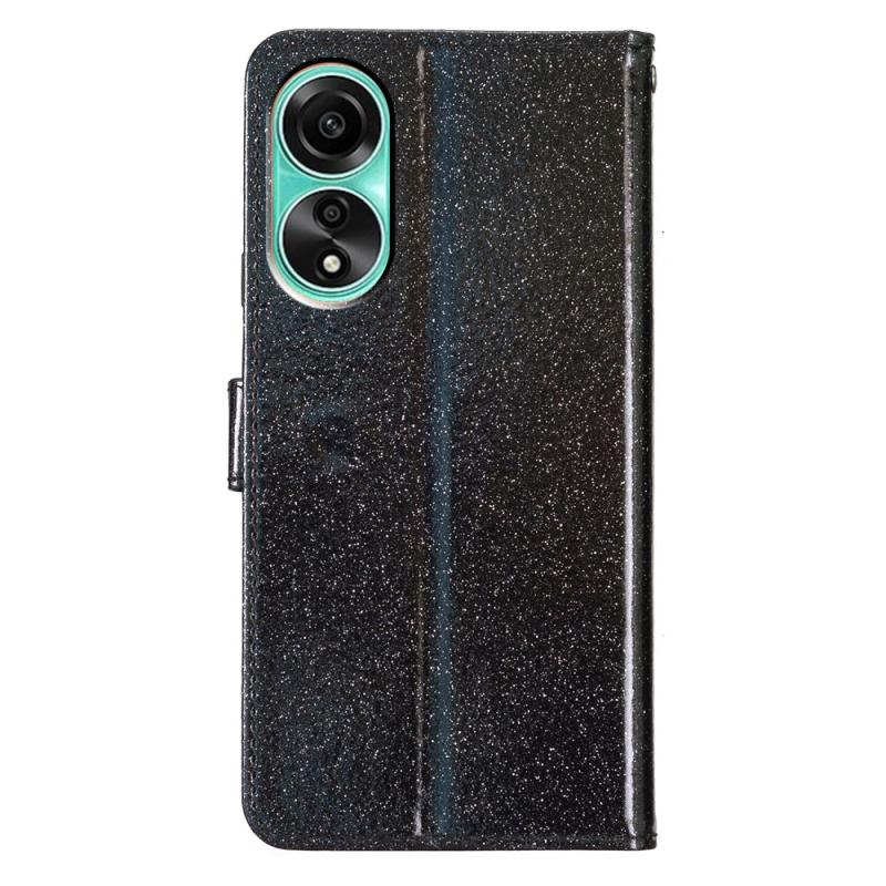 For OPPO A58 4G Glitter Powder Flip Leather Phone Case(Black)