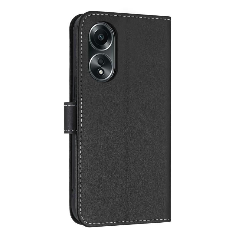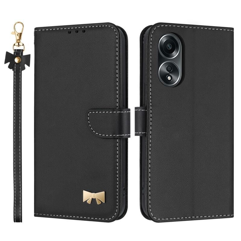 For OPPO A58 4G Global Metal Bow Leather Phone Case with Hand Strap(Black)