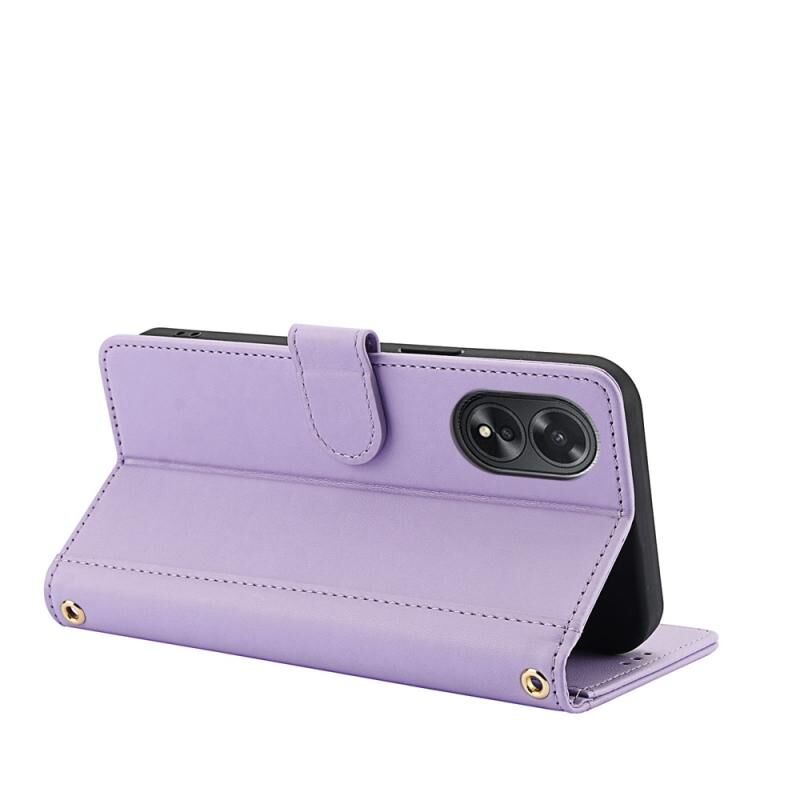 Για OPPO A58 4G Global Skin Feel Pure Color Card Slots δερμάτινη θήκη τηλεφώνου με διπλό κορδόνι (μωβ)