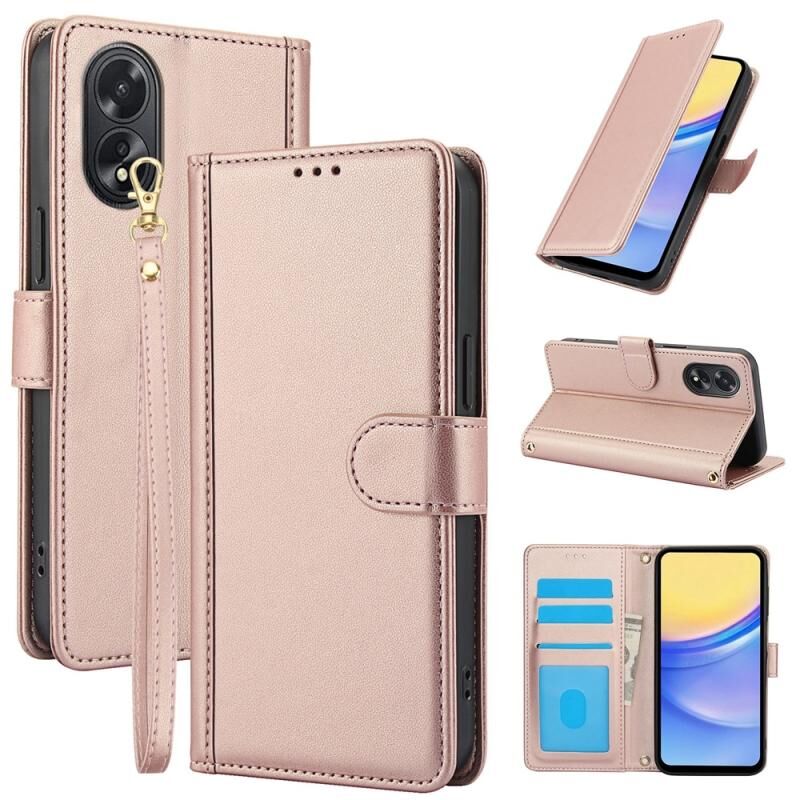 Για OPPO A58 4G Global Skin Feel Pure Color Card Slots δερμάτινη θήκη τηλεφώνου με διπλό κορδόνι (Rose Gold)