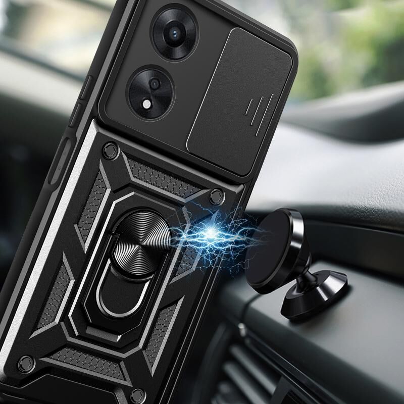 Θήκη κινητού τηλεφώνου για OPPO A58 4G Global, υβριδική από TPU και PC, με σχεδιασμό ολισθαίνουσας κάμερας (Μέντα Πράσινο)
