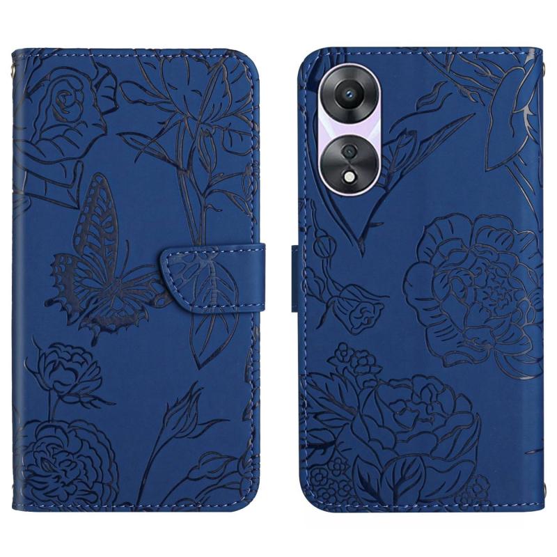 For OPPO A58 4G HT03 Skin Feel Butterfly Embossed Flip Leather Phone Case(Blue)