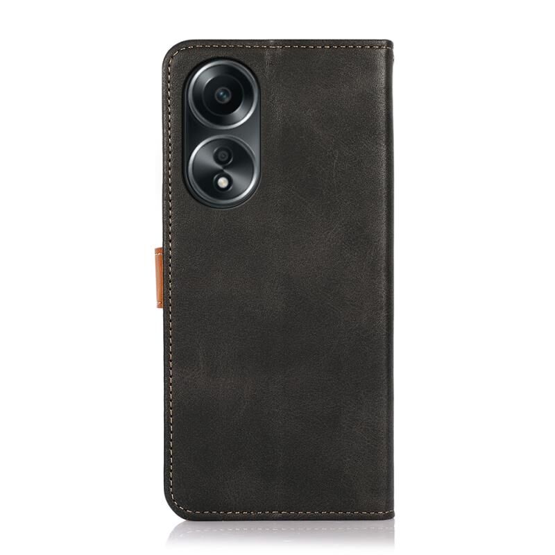 Θήκη τηλεφώνου από δέρμα με διπλό χρώμα και υφή δέρματος αγελάδας για OPPO A58 4G KHAZNEH (Μαύρο)