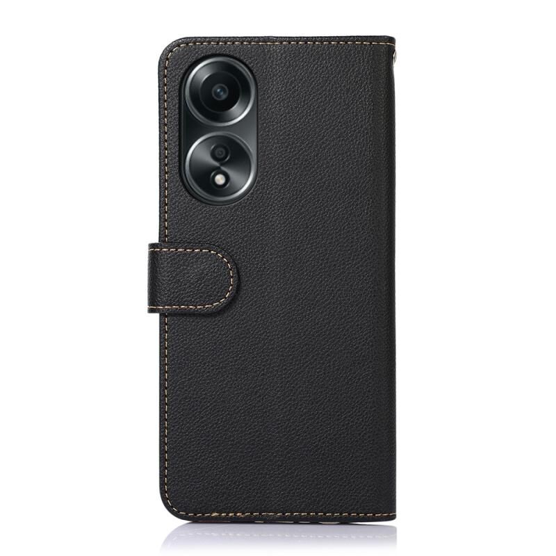 Θήκη κινητού τηλεφώνου OPPO A58 4G KHAZNEH με δέρμα υφής λυτσί και προστασία RFID (Μαύρο)