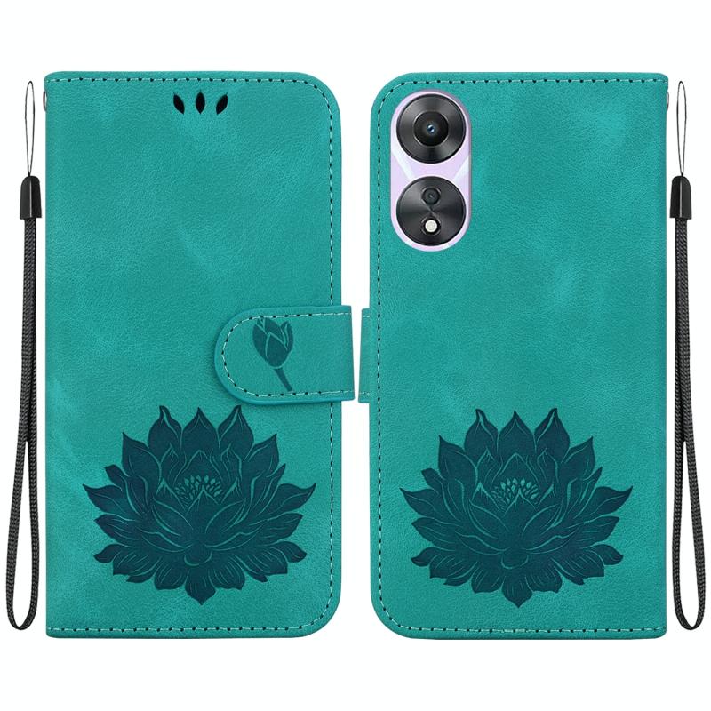 For OPPO A58 4G Lotus Embossed Leather Phone Case(Green)
