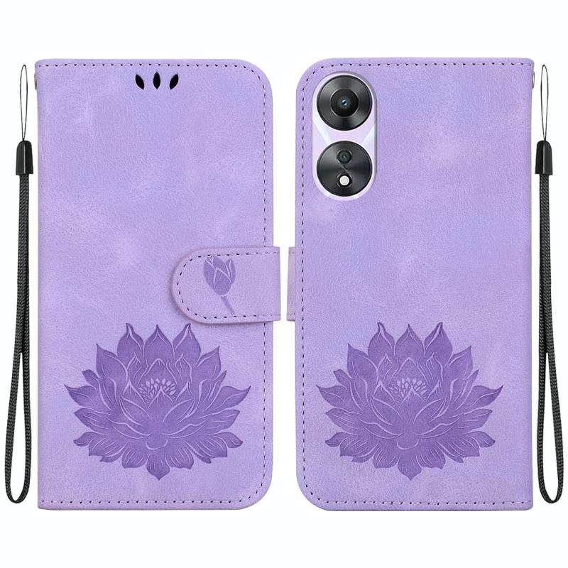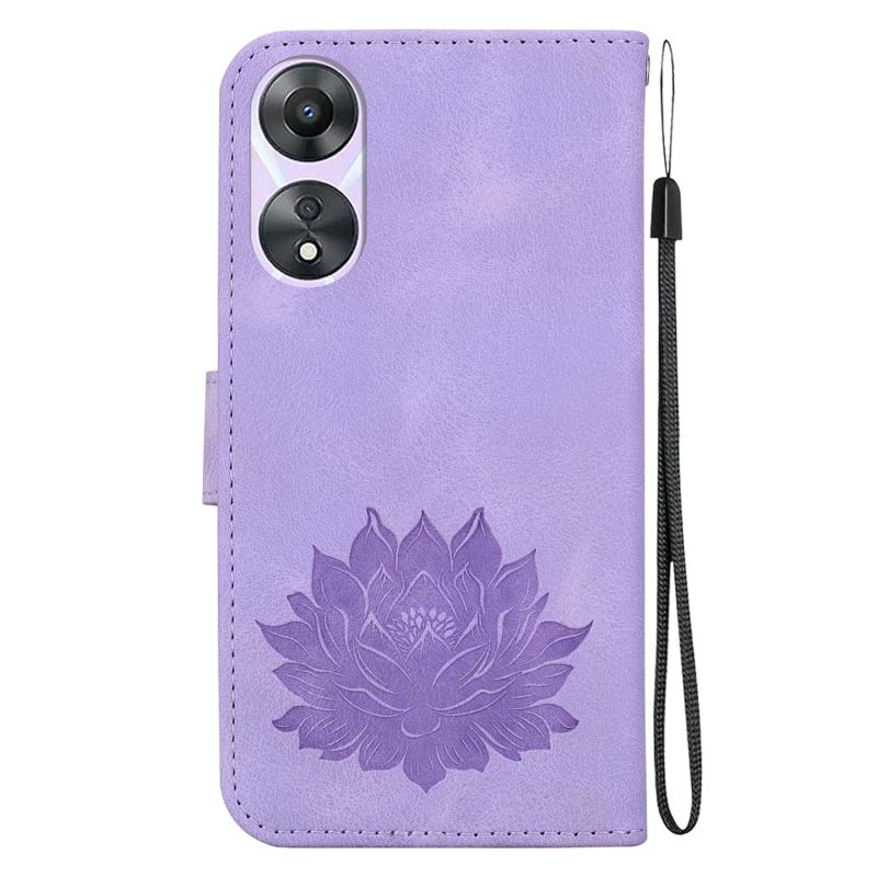 For OPPO A58 4G Lotus Embossed Leather Phone Case(Purple)