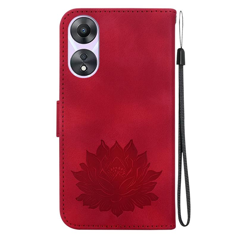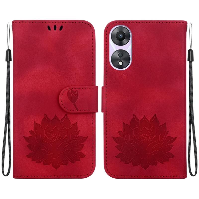 For OPPO A58 4G Lotus Embossed Leather Phone Case(Red)