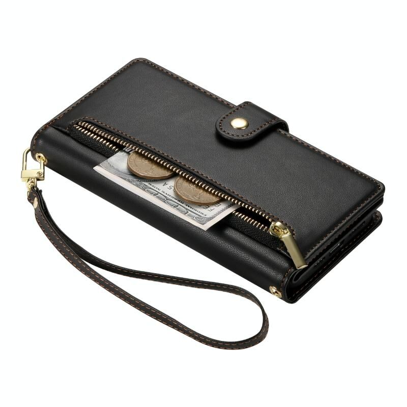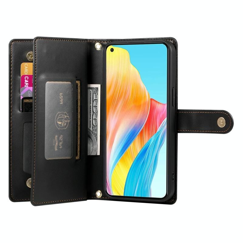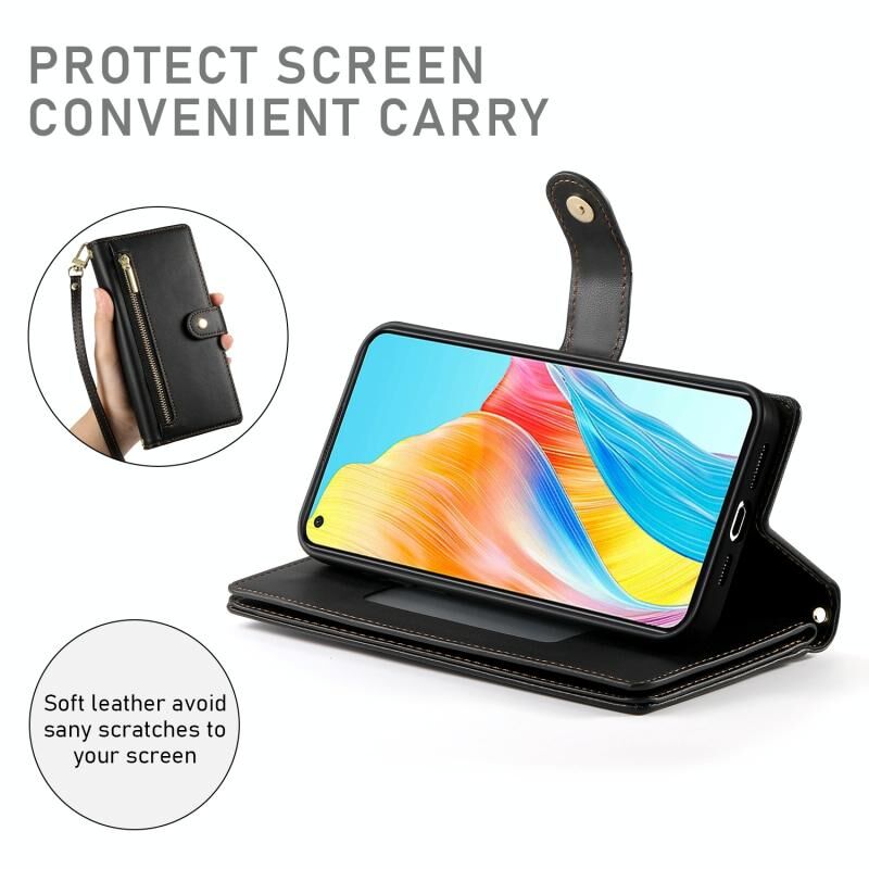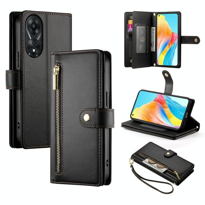 Για OPPO A58 4G Nine Card-slot φερμουάρ πορτοφόλι τσάντα δέρμα τηλέφωνο υπόθεση (μαύρο)