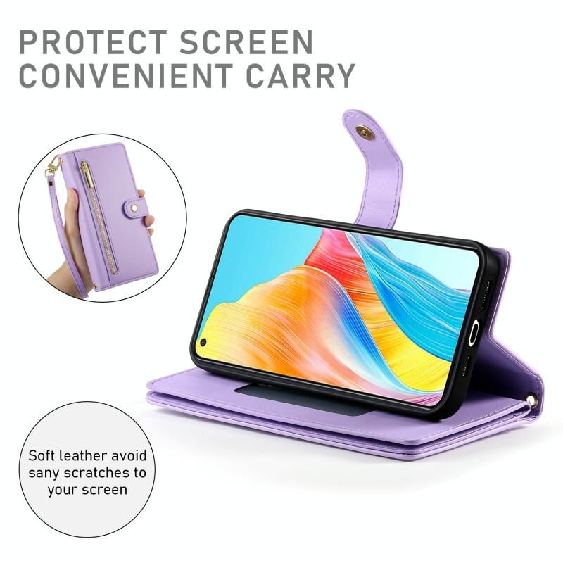 Για OPPO A58 4G Nine Card-slot φερμουάρ πορτοφόλι τσάντα δέρμα τηλέφωνο υπόθεση (μωβ)