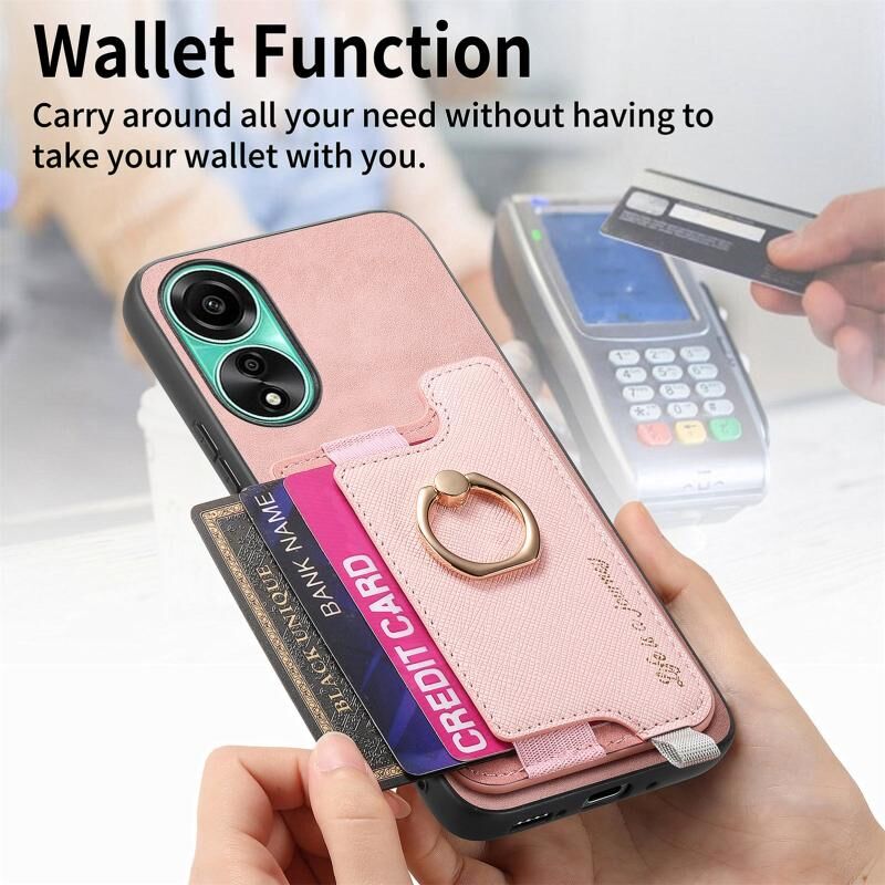 Θήκη τηλεφώνου για OPPO A58 4G, Ρετρό Magsafe, Δερμάτινη με Δαχτυλίδι και Θήκη Καρτών (Κίτρινο)