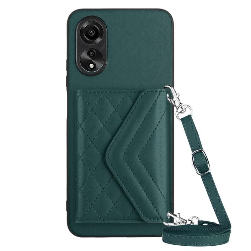 Για OPPO A58 4G Rhombic υφή κάρτα τσάντα RFID υπόθεση τηλεφώνου με μακρύ κορδόνι (Πράσινο)