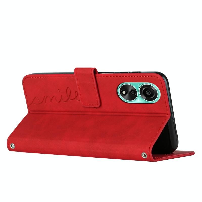 Για OPPO A58 4G δέρμα αίσθηση καρδιά μοτίβο δερμάτινη θήκη τηλεφώνου με κορδόνι (Κόκκινο)