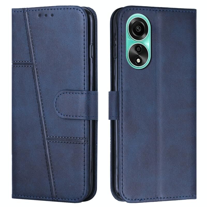 Για OPPO A58 4G ραφή μοσχάρι υφή πόρπη δέρμα τηλέφωνο υπόθεση (Μπλε)