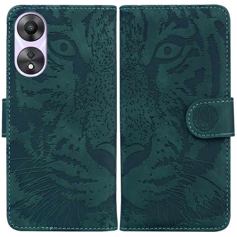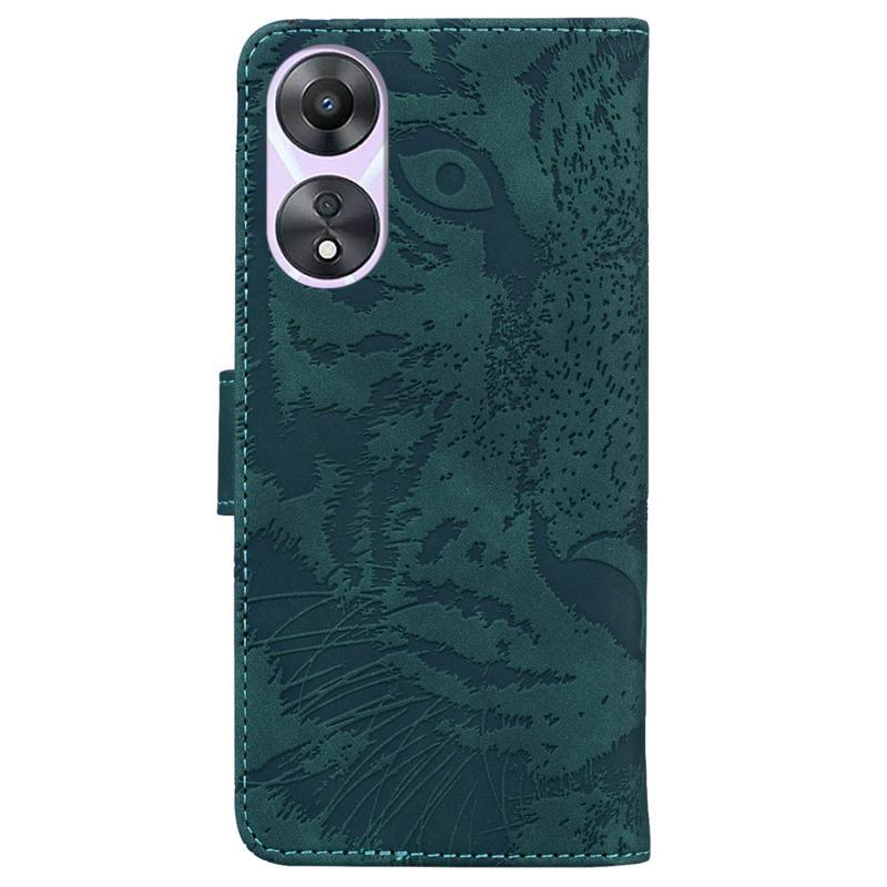 Θήκη τηλεφώνου από δέρμα με σχέδιο Tiger Embossing για OPPO A58 4G (Μαύρο)