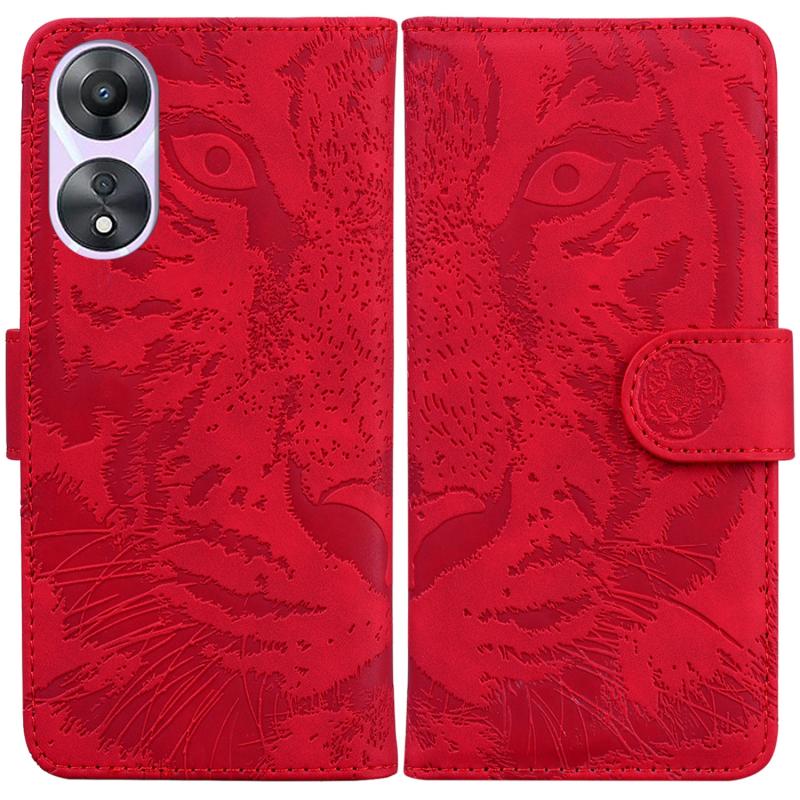 Θήκη τηλεφώνου από δέρμα με σχέδιο Tiger Embossing για OPPO A58 4G (Μαύρο)