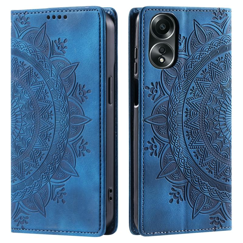 For OPPO A58 4G Totem Embossed Magnetic Leather Phone Case(Blue)