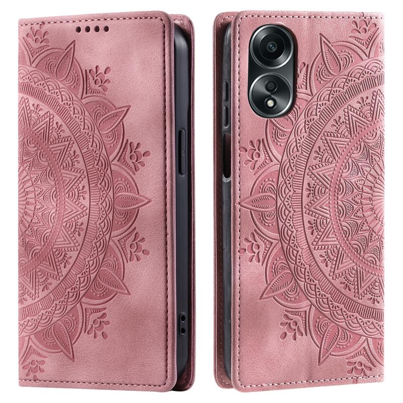 For OPPO A58 4G Totem Embossed Magnetic Leather Phone Case(Rose Gold)