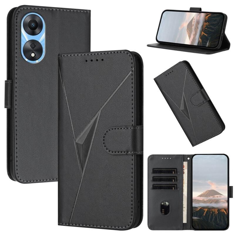 Θήκη τηλεφώνου από δέρμα με σχέδιο τριγώνου και μαγνητικό κούμπωμα για OPPO A58 4G (Σκούρο Μωβ)