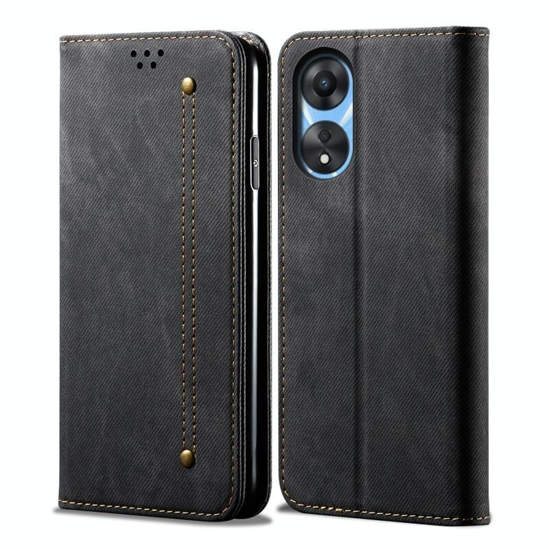 Για OPPO A58 5G / A58x / A78 5G Denim Texture Δερμάτινη θήκη τηλεφώνου (μαύρο)