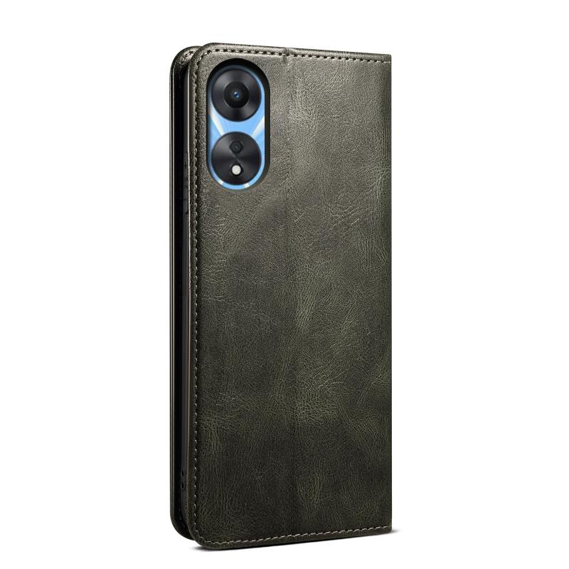 Θήκη τηλεφώνου από δέρμα με υφή λαδιού και τρελού αλόγου για OPPO A58 5G / A58x / A78 5G (Μαύρο)