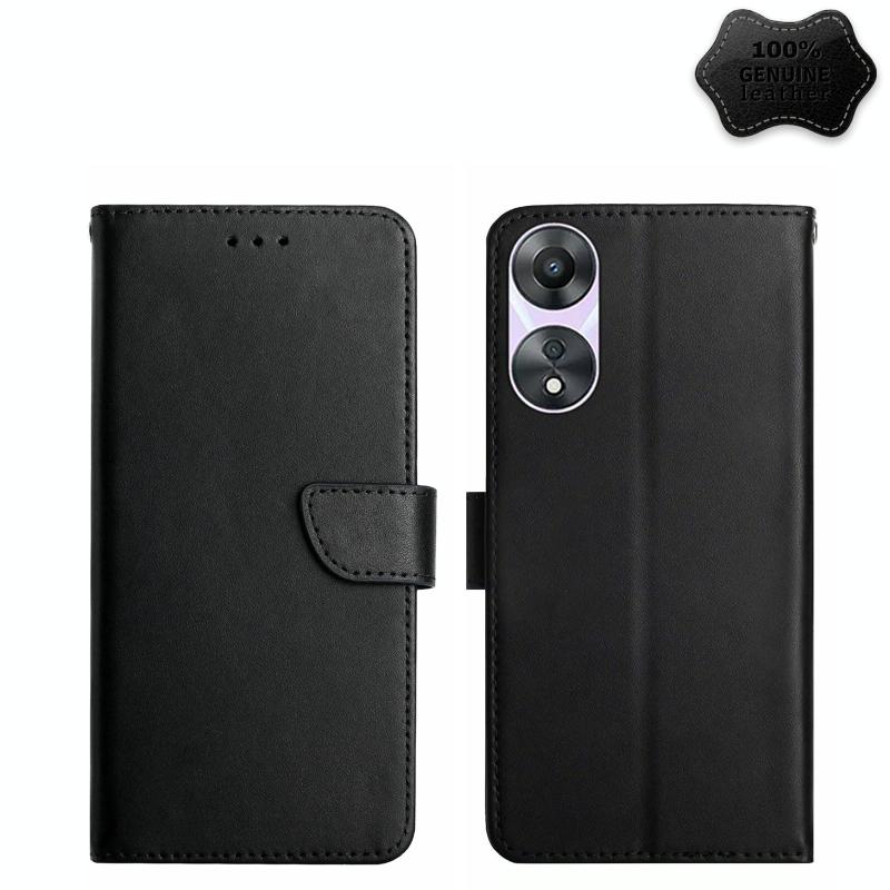 Θήκη τηλεφώνου Flip από γνήσιο δέρμα, ανθεκτική στα δακτυλικά αποτυπώματα για OPPO A58 5G/A78 5G (Μαύρο)