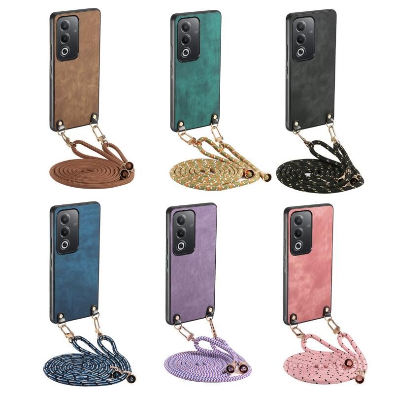 For OPPO A58 5G / A78 5G Vintage Leather PC Back Cover Phone Case with Crossbody Strap(Purple)