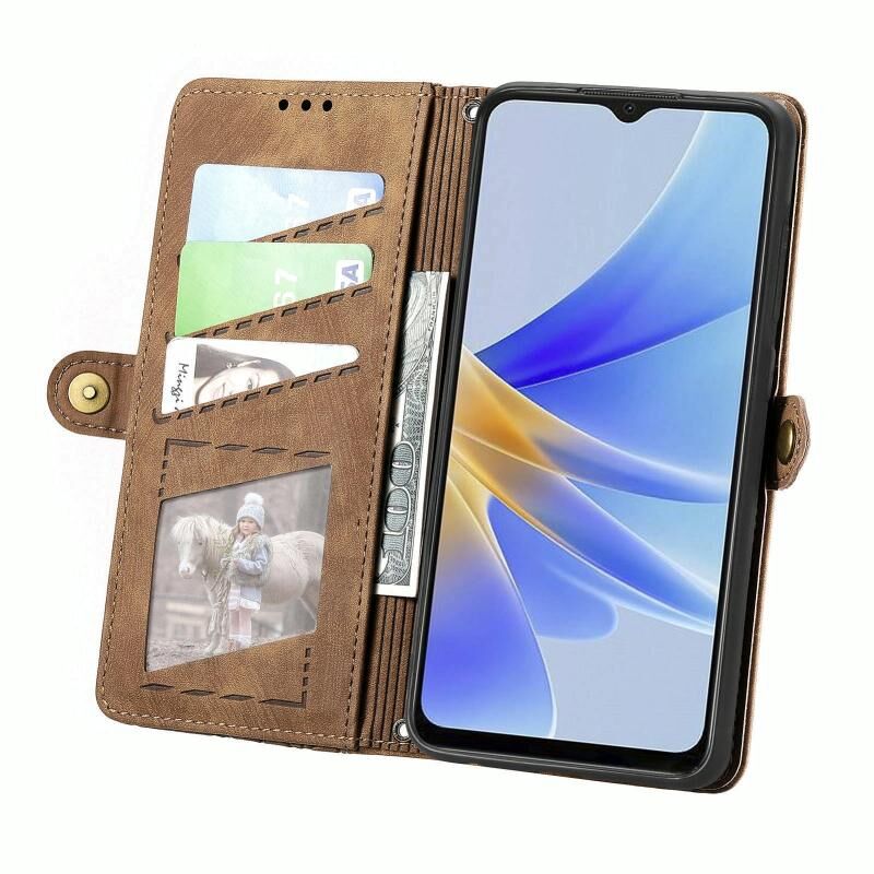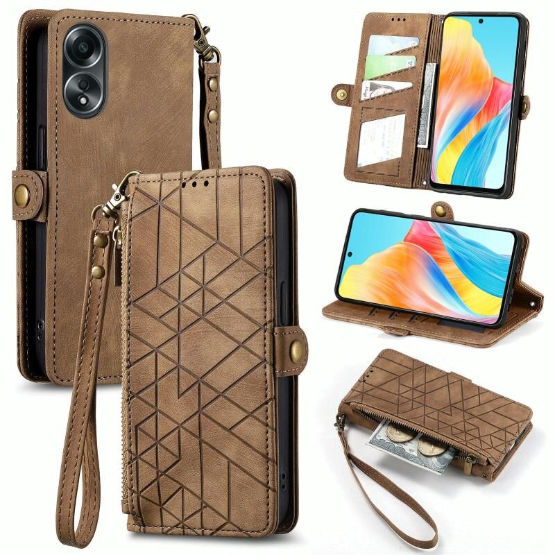 Για OPPO A58 5G γεωμετρική φερμουάρ πορτοφόλι πλευρά πόρπη δερμάτινη θήκη τηλεφώνου (καφέ)