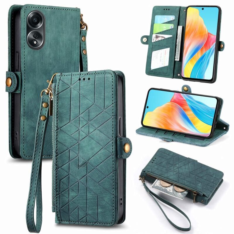 Για OPPO A58 5G γεωμετρική φερμουάρ πορτοφόλι πλευρά πόρπη δερμάτινη θήκη τηλεφώνου (πράσινο)