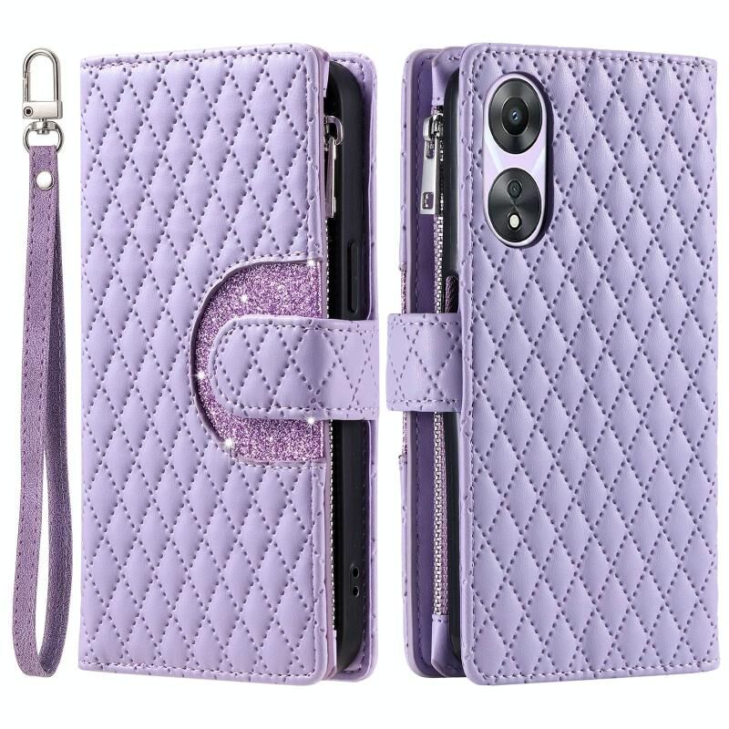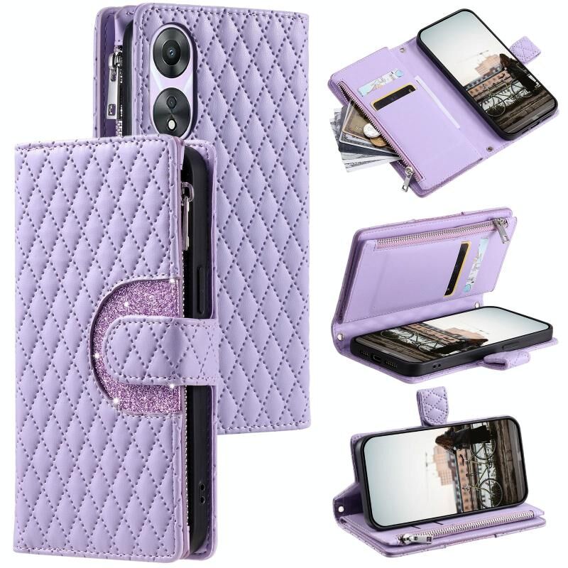 Για OPPO A58 5G Glitter Lattice φερμουάρ πορτοφόλι δερμάτινη θήκη τηλεφώνου (Μωβ)