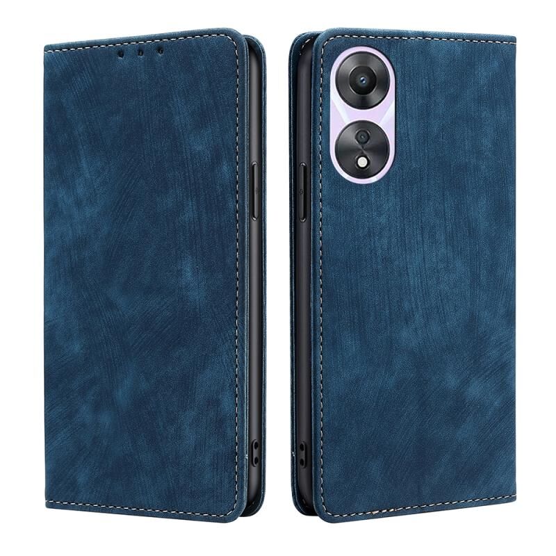 Για OPPO A58 5G RFID Anti-theft βούρτσα μαγνητική δερμάτινη θήκη τηλεφώνου (μπλε)