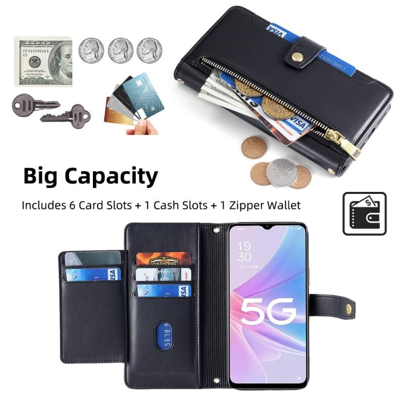 2. Λειτουργία πορτοφολιού πολλαπλών καρτών: Θήκες για κάρτες και διαμέρισμα με φερμουάρ για την αποθήκευση των πιστωτικών σας καρτών, μετρητών ή μικρών σημειώσεων για καθημερινή χρήση.