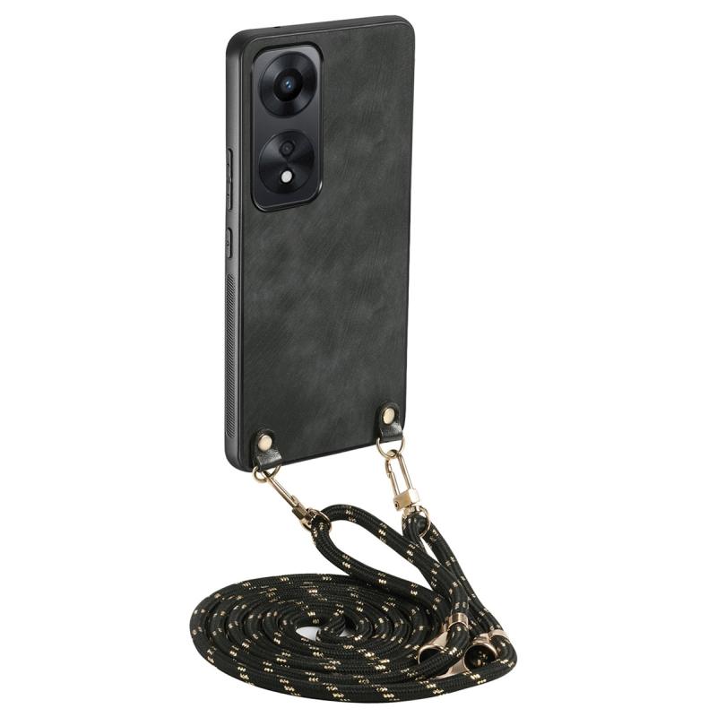For OPPO A58 5G Vintage Leather PC Back Cover Phone Case with Crossbody Strap(Black)