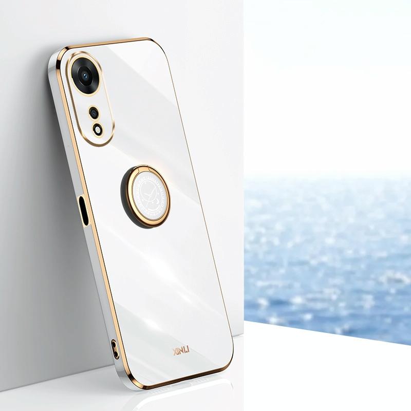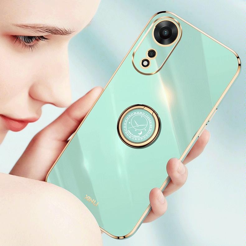 Θήκη κινητού τηλεφώνου για OPPO A58 5G XINLI με ευθείες άκρες, 6D επιμετάλλωση TPU με δακτύλιο στήριξης (Μέντας Πράσινο)