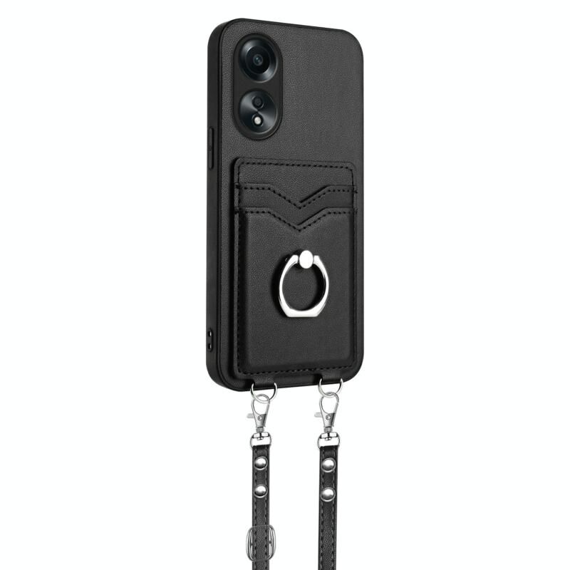 Για OPPO A58 / A58x / A1x R20 Crossbody σχοινί δαχτυλίδι κάρτα κάτοχος τηλέφωνο υπόθεση (μαύρο)