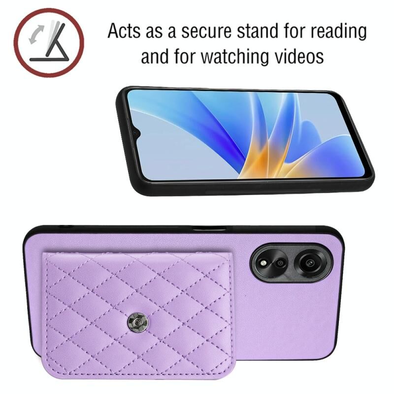 Θήκη κινητού τηλεφώνου με υφή ρόμβου και μακρύ κορδόνι για OPPO A58 / A58x, με προστασία RFID (Μωβ)