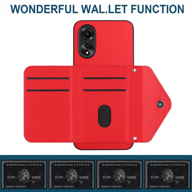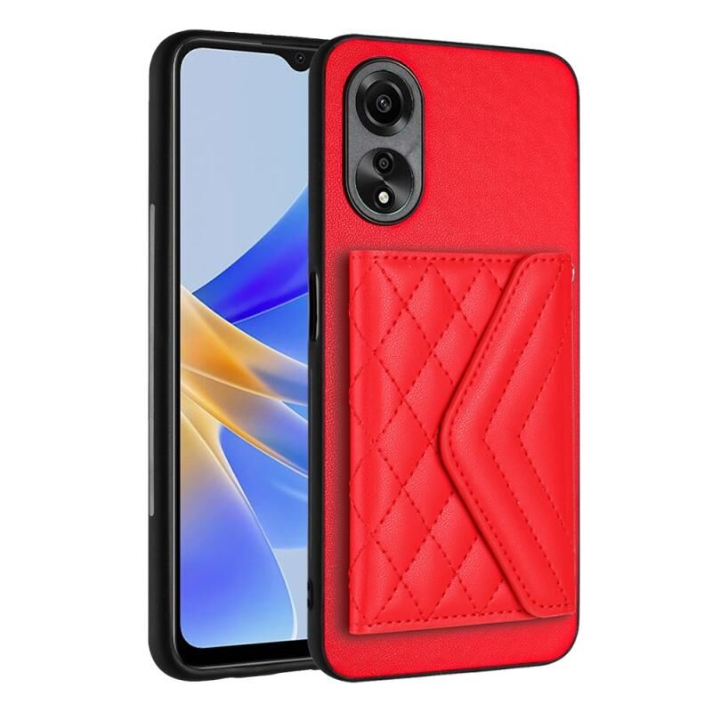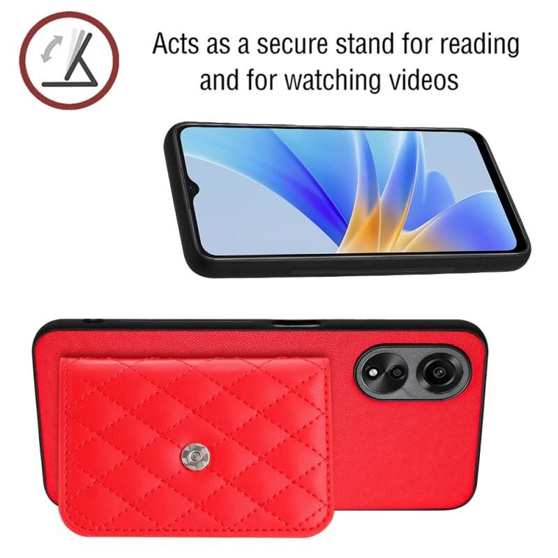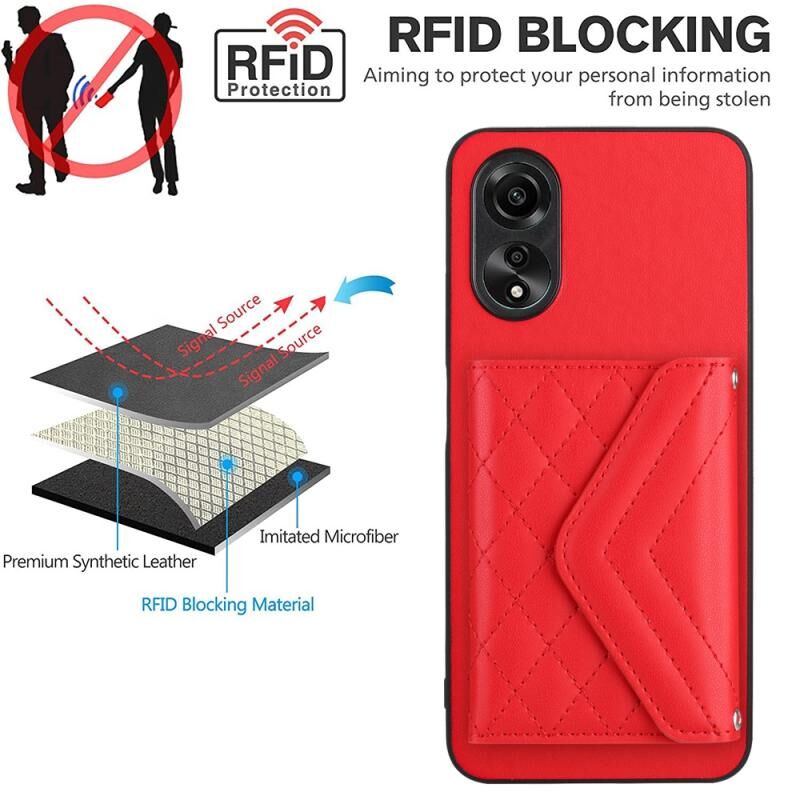 Για OPPO A58 / A58x Rhombic υφή κάρτα τσάντα RFID υπόθεση τηλεφώνου με μακρύ κορδόνι (κόκκινο)