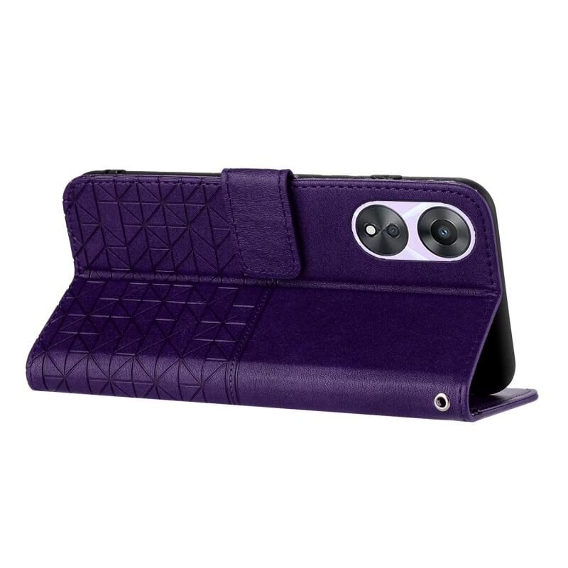 For OPPO A58 / A78 Rhombic Texture Leather Phone Case with Lanyard(Purple)