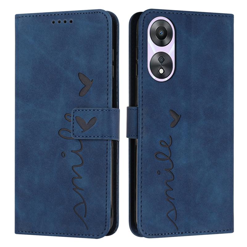 For OPPO A58 / A78 Skin Feel Heart Embossed Leather Phone Case with Long Lanyard(Blue)
