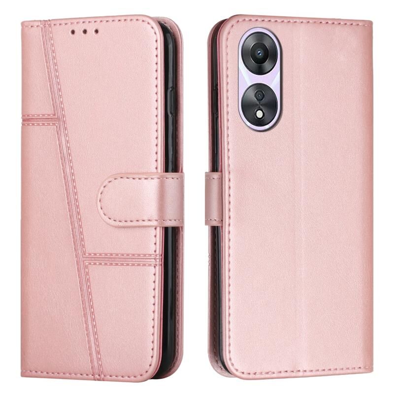 For OPPO A58 / A78 Stitching Calf Texture Buckle Leather Phone Case(Rose Gold)