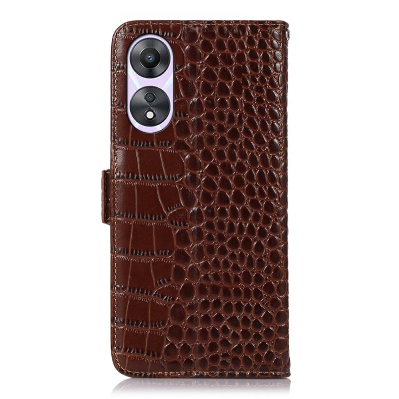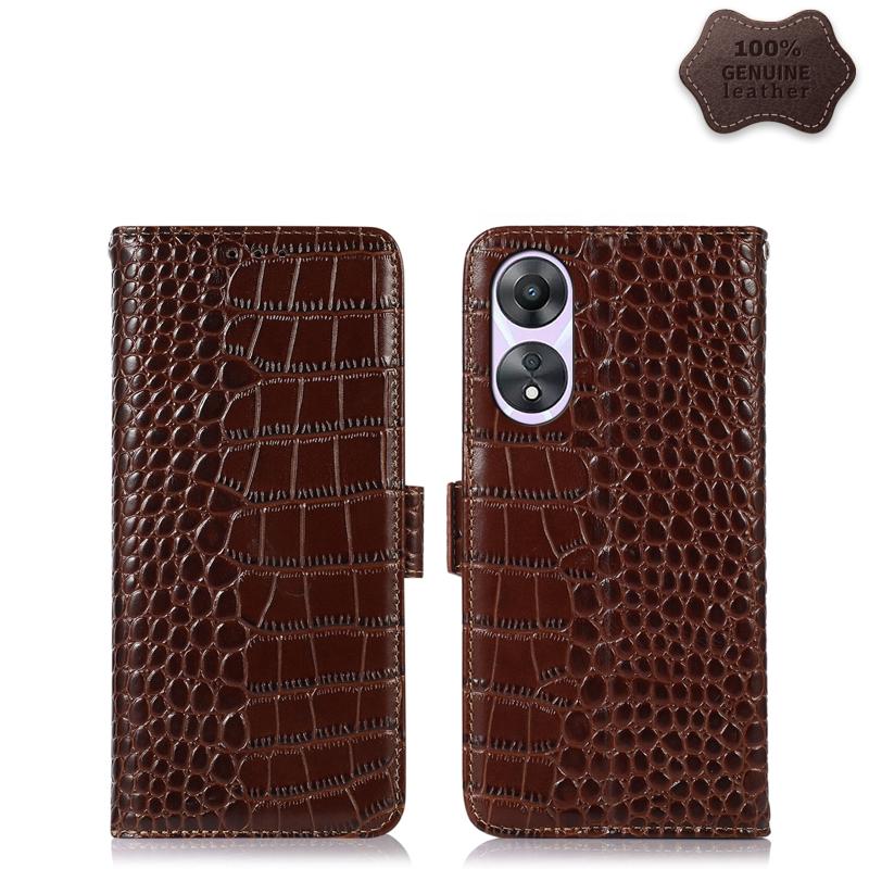 Θήκη τηλεφώνου από γνήσιο δέρμα αγελάδας με επικάλυψη κροκόδειλου για OPPO A58 (Καφέ)