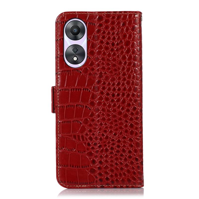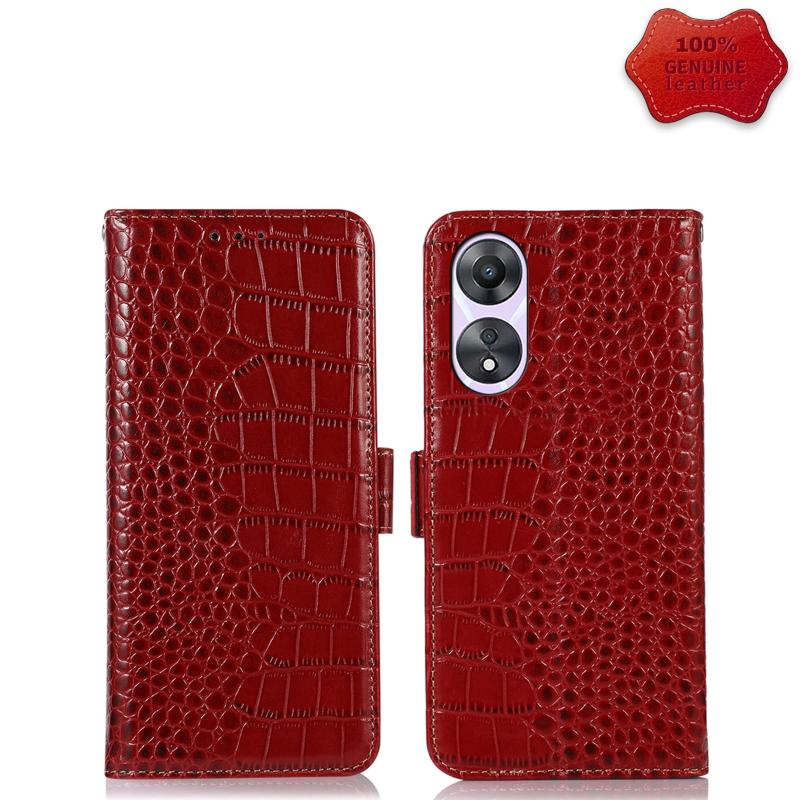 Θήκη τηλεφώνου από γνήσιο δέρμα αγελάδας με επικάλυψη κροκόδειλου για OPPO A58 (Κόκκινο)