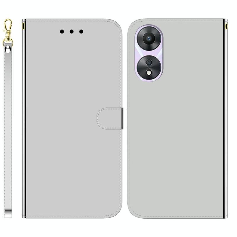 Για OPPO A58 Απομιμητικά Mirror Surface Flip δέρμα τηλέφωνο υπόθεση (Ασημί)