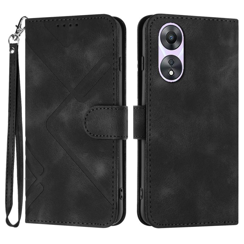 Θήκη τηλεφώνου από δέρμα με υφή γραμμής για OPPO A58 (Μαύρο)